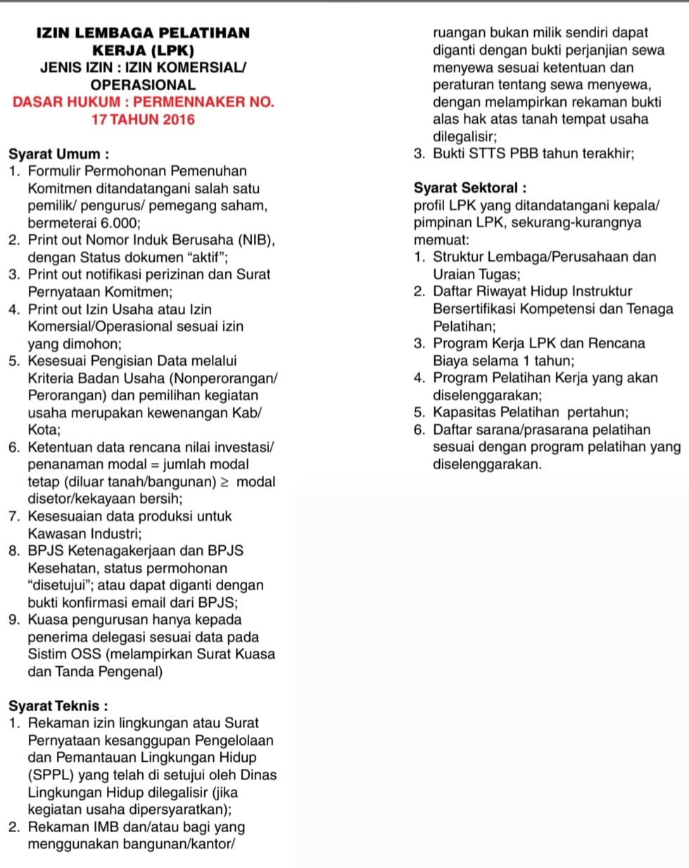 Izin Lembaga Pelatihan Kerja (LPK)