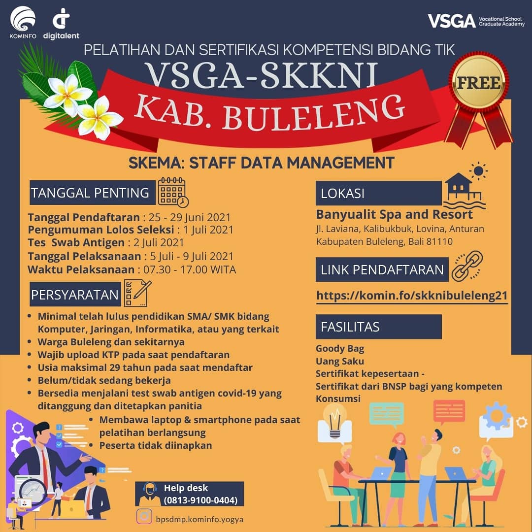 Pelatihan dan Sertivikasi Bidang TIK VSGA-SKKNI.Kab, Buleleng Ayo Daftar Segera