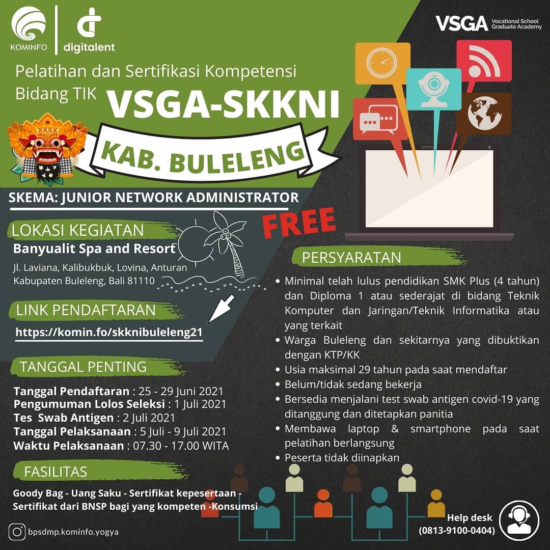 Pelatihan dan Sertivikasi Bidang TIK VSGA-SKKNI.Kab, Buleleng Ayo Daftark Segera.
