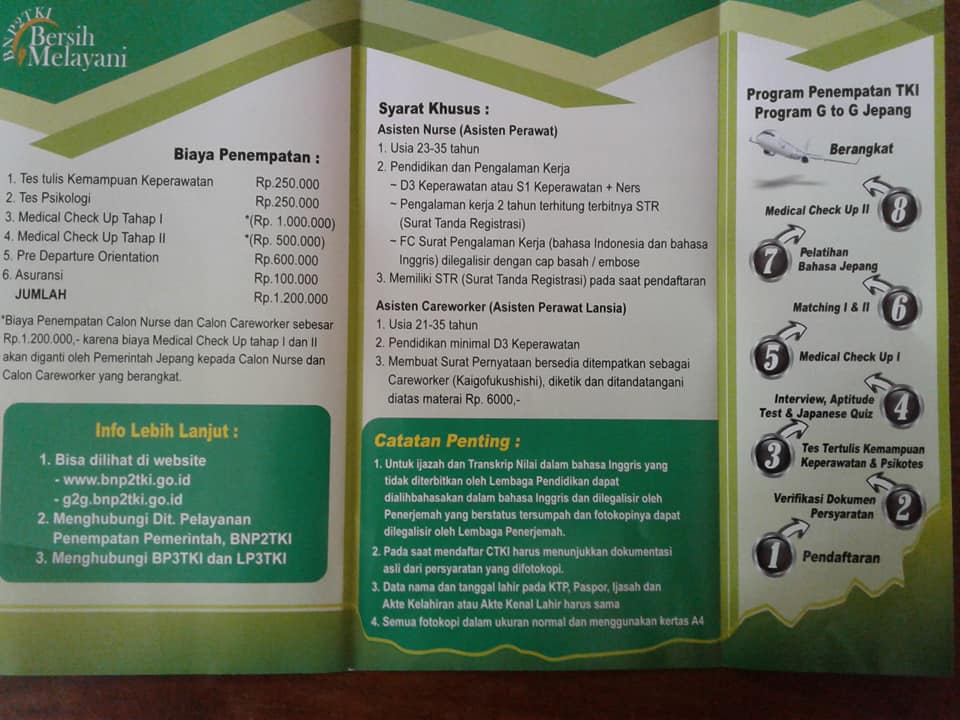Untuk program Penempatan TKI G TO G (GOVERMENT TO GOVERNMENT) ke Jepang Tahun anggaran 2017