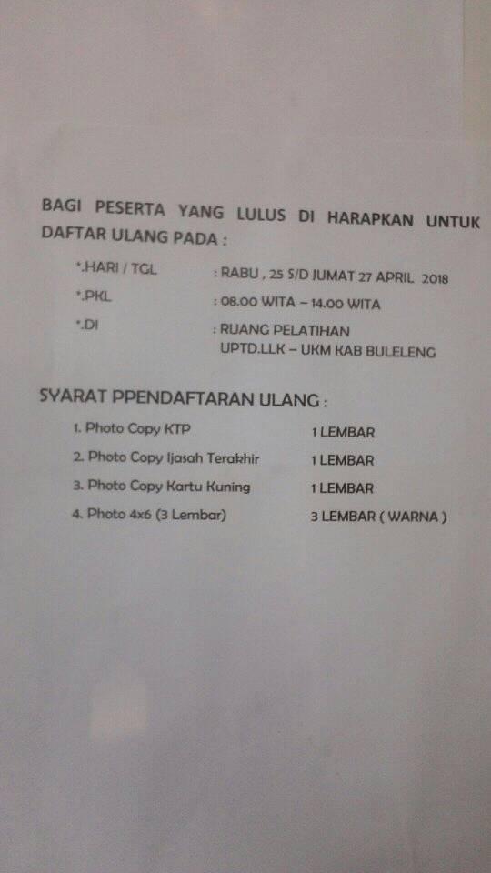 untuk yang sudah lulus bagi yang ikut dalam seleksi pelatihan agar segera mengikuti kembali daftar ulang