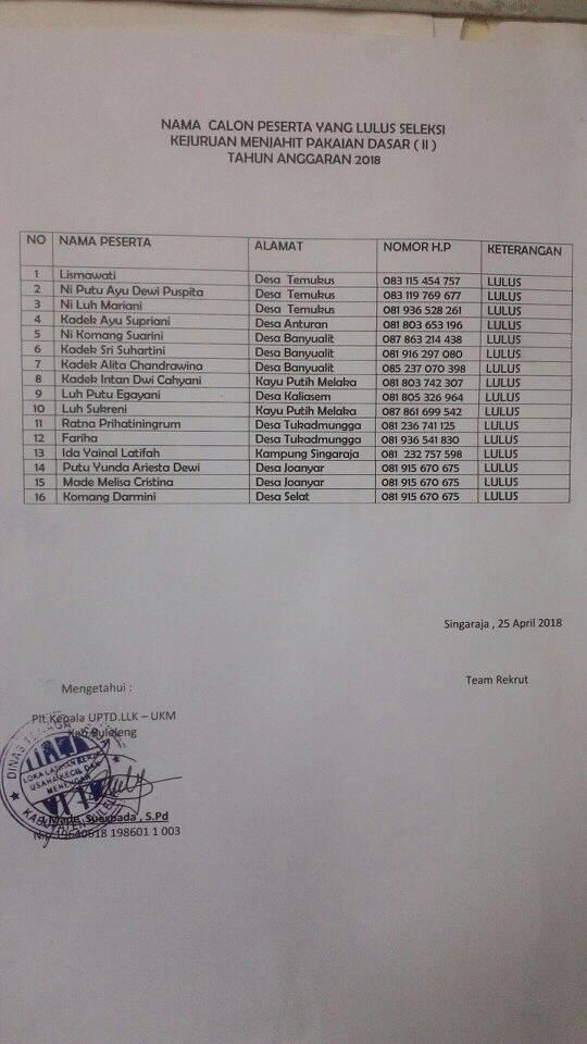 Bagi yang telah lulus seleksi bisa dilihat langsung pengumuman telah di unggah serta di pasang