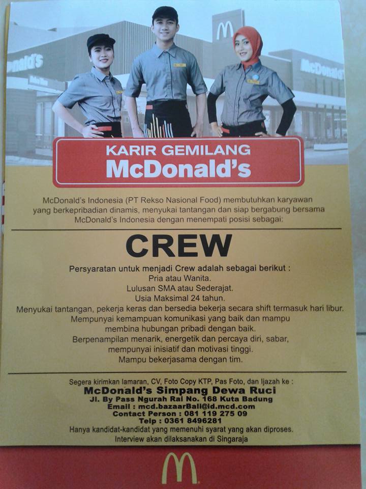 Lamaran bisa di masukkan dengan alamat yang sudah tertera