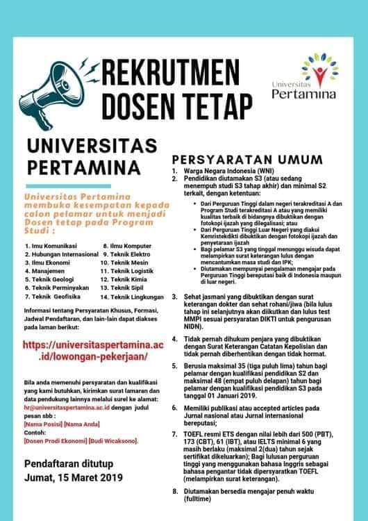 Rekrutmen Dosen tetap Universitas Pertamina